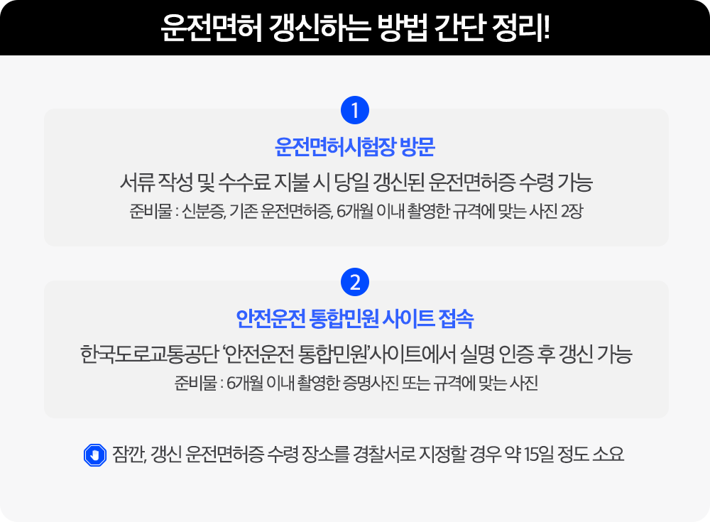 운전면허 갱신 시 다음 사항을 반드시 확인해야 합니다.